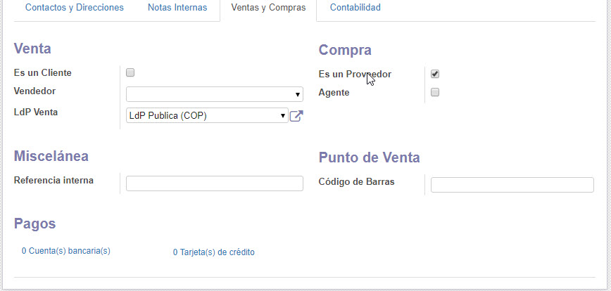 - Cliente: Si el proveedor también es un cliente active la casilla (se usa para activar las funciones de ventas).