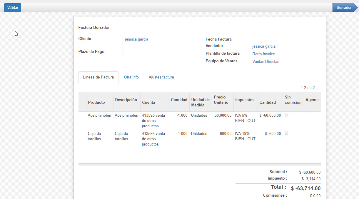 • Factura: Seleccionar el campo factura para que la misma ingrese a contabilidad ya validada y se creen los asientos correspondientes.