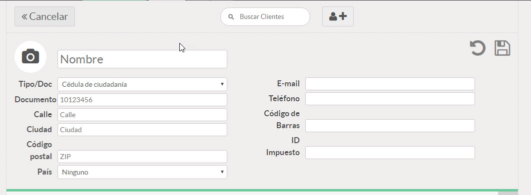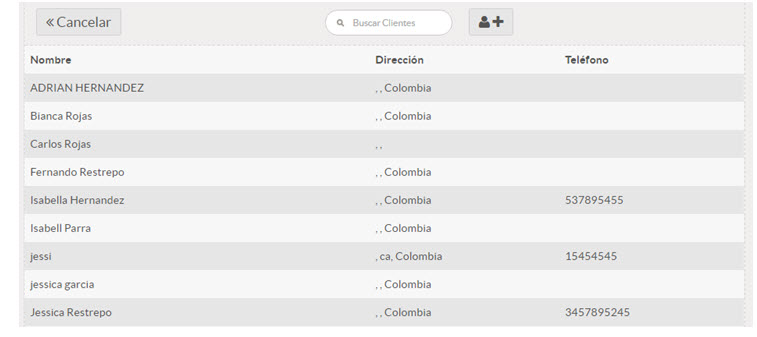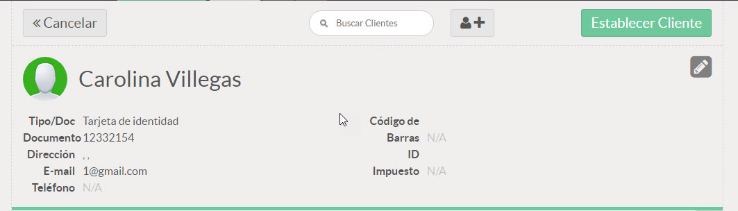 - En el campo buscar cliente se puede colocar la cédula de ciudadanía, el nombre u otro dato para verificar si el cliente esta creado en la base de datos.