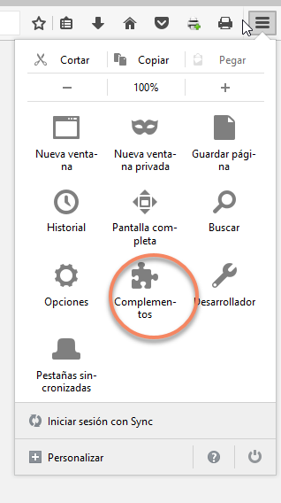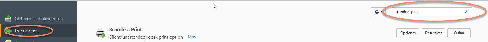 - Configuración de la impresora por Firefox: Se ingresa a complementos de Firefox: