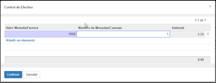 • Añadir efectivo: Se puede agregar efectivo en la caja siempre que la sesión este abierto y a través de esta opción.